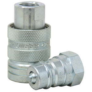 clamped, poppet valves are available to prevent uncoupled leakage. Rated pressure is 3000 PSI. Body Size: 3/8" Style: poppet Thread Size: 3/8-18 NPTF