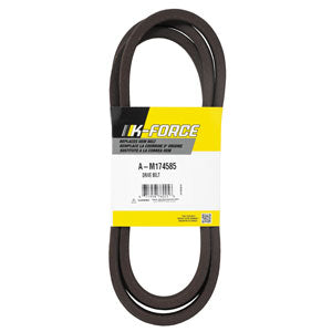 This is a A-M174585 Drive Belt PN: M174585Main Description As Following : A-M174585 Drive Belt PN: M174585 Found in Section & Models : Lawn & Garden & Specialty Belts > RIDING MOWER, John Deere MOWER, RIDING: X570, John Deere MOWER, RIDING: X580, John Deere MOWER, RIDING: X584, John Deere MOWER, RIDING: X590 Associated Items : New Also This is An Aftermarket Product And : .633" X 97.50" Wrapped Aramid Cord Color: Brown Length: 97.50" Material: Aramid Cord Thickness: .36" Type: Wrapped Width: .633"