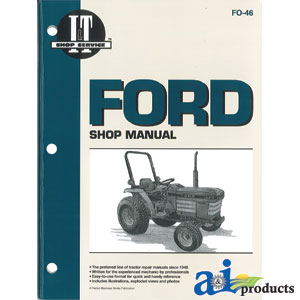 This is a A-SMFO46 Ford New Holland Shop Manual PN: SMFO46Main Description As Following : A-SMFO46 Ford New Holland Shop Manual P.N: SMFO46 I&T Shop manual FO-46 Ford Compact Tractor models: 1120, 1220, 1320, 1520, 1720, 1920, 2120. I&T Shop manuals have been the trusted source for professionals and experienced mechanics. I&T Shop manuals were originally published 40 years ago under the Intertec banner and designed for professional tractor repair mechanics. Each manual covers removal, overhaul, installation and adjustment procedures of various assemblies and subassemblies. The manual is intended to be used with the tractor's original operator's manual. Wiring diagrams are included on select titles. Crossed From: FO-46 , , FO46 , , ITFO46 , , 1115-2233 , , 595-FO46 , , 595FO46 , Found in Section & Models : Manuals > Manuals, Ford / New Holland TRACTOR, COMPACT: 1120, Ford / New Holland TRACTOR, COMPACT: 1220, Ford / New Holland TRACTOR, COMPACT: 1320, Ford / New Holland TRACTOR, COMPACT: 1520, Ford / New Holland TRACTOR, COMPACT: 1720, Ford / New Holland TRACTOR, COMPACT: 1920, Ford / New Holland TRACTOR, COMPACT: 2120 Associated Items : New Also A-FO-O-1120, A-SMFO46, A-SMFO46, A-SMFO46, A-SMFO46, A-FO-O-1720, A-SMFO46, A-FO-O-1920, A-FO-P-19202120, A-FO-S-19202120, A-SMFO46, A-FO-O-2120COMP, A-FO-P-19202120, A-FO-S-19202120, A-SMFO46 And : I&T Shop manual FO-46 Ford Compact Tractor models: 1120, 1220, 1320, 1520, 1720, 1920, 2120.
